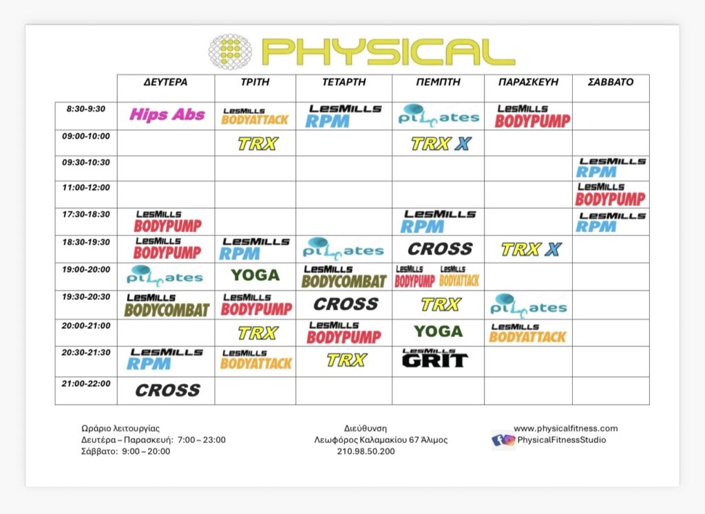PHYSICAL FITNESS STUDIO SCHEDULE